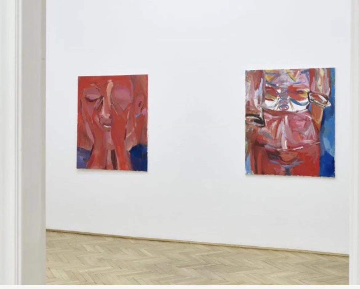 Wasn’t this also the driving force behind Miriam Cahn and Maria Lassnig? Both expressionists painters, long underappreciated, faithful above all to themselves, fighting the repression of emotion through their paintings. This emotional repression, released through artistic expression, is deeply rooted in psychology. In childhood, it often functions as a survival mechanism in difficult situations. In adulthood, the habit becomes too ingrained to change. The lack of emotional responsiveness can find an outlet in art, preventing the pot in which emotions simmer from blowing its lid. Expression emerges from feelings stored in the body, and the artist's battle with the canvas is an attempt to shed this uncomfortable dysfunction. Painting becomes part of the spiritual realm—it enables rebirth into a new body of art and liberation. Not only by releasing difficult emotions, but perhaps also through expressing the good ones. In Misztal’s paintings, we see her joy of running in the sun. She recalls waking up healthy after illness and beginning the process of accepting lost time. She smiles, though the smile is more a grotesque grimace than a posed look for a nice photo. From the red canvases, her own, independent world emerges—unborrowed, unreferenced. Despite the associations with ecstatic suffering, she does not reject those interpretations. Expression, full of tension in color and bold gestures, makes her unmistakably recognizable as the author.